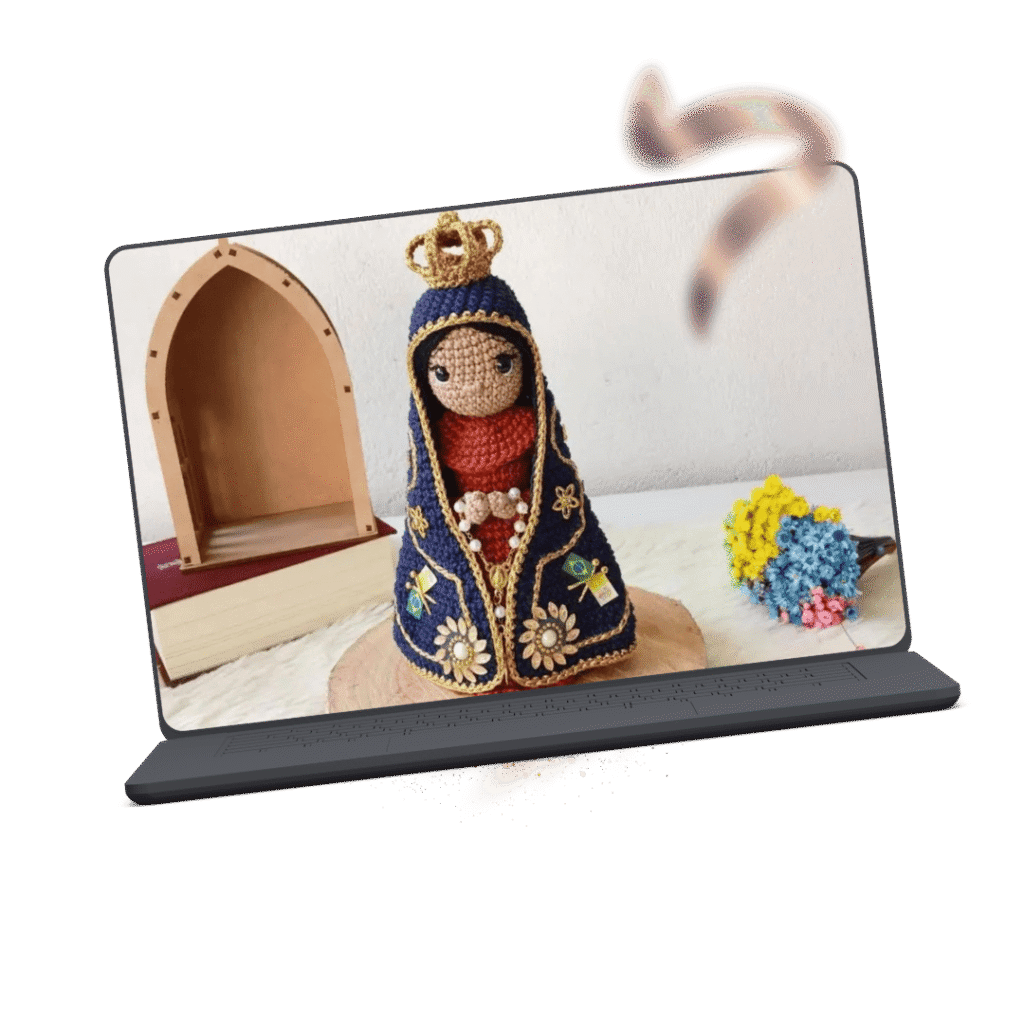 O Santinhas Que Encantam é um curso online pensado com muito carinho para quem deseja aprender a crochetar amigurumis inspirados na fé — com detalhes delicados, encantadores, simbologia e significado.