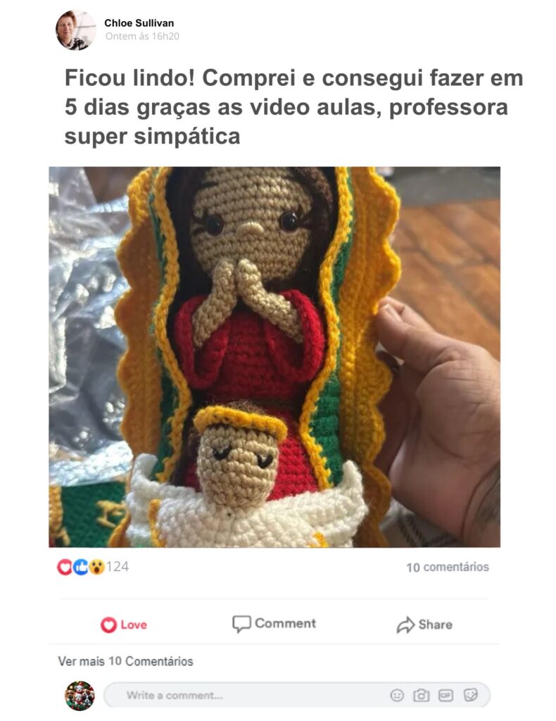Está começando agora no crochê e sonha em entrar no nicho religioso com segurança e acolhimento.