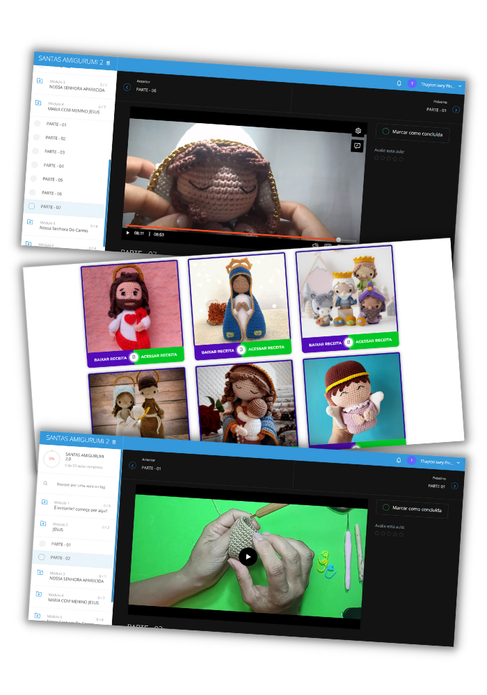 Mesmo que você nunca tenha feito amigurumi, pode começar com segurança. As aulas são gravadas, com moldes passo a passo, suporte atencioso e bônus especiais.