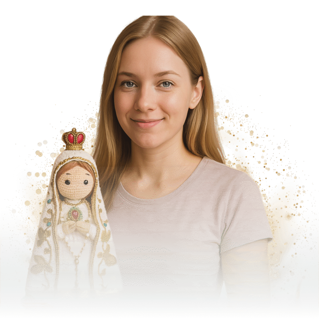 Oi! meu nome é Julia e Eu sou a criadora do curso Santinhas Que Encantam, tenho 27 anos e sou apaixonada por transformar fios em fé e delicadeza. Criei esse curso para te mostrar que, com as técnicas certas, você também pode fazer santinhas lindas, cheias de significado e carinho.